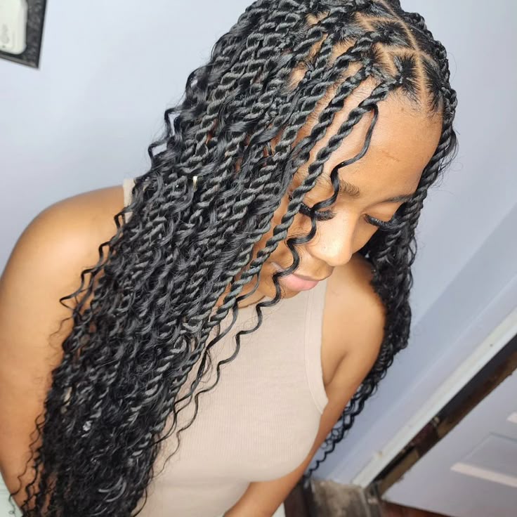 Soft, textured braids with natural curls for a relaxed, modern look.